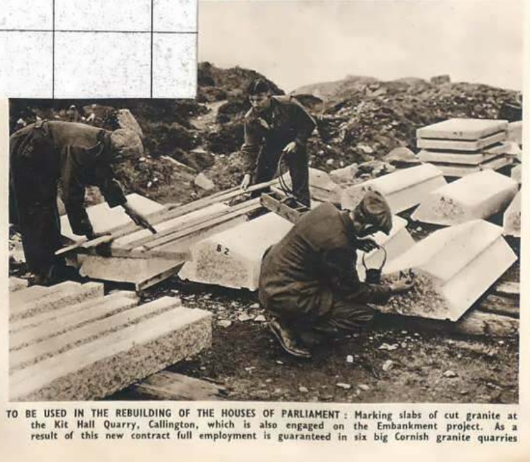 Kit Hill Quarry working in 1948 on repairs to Parliament and the Embankment