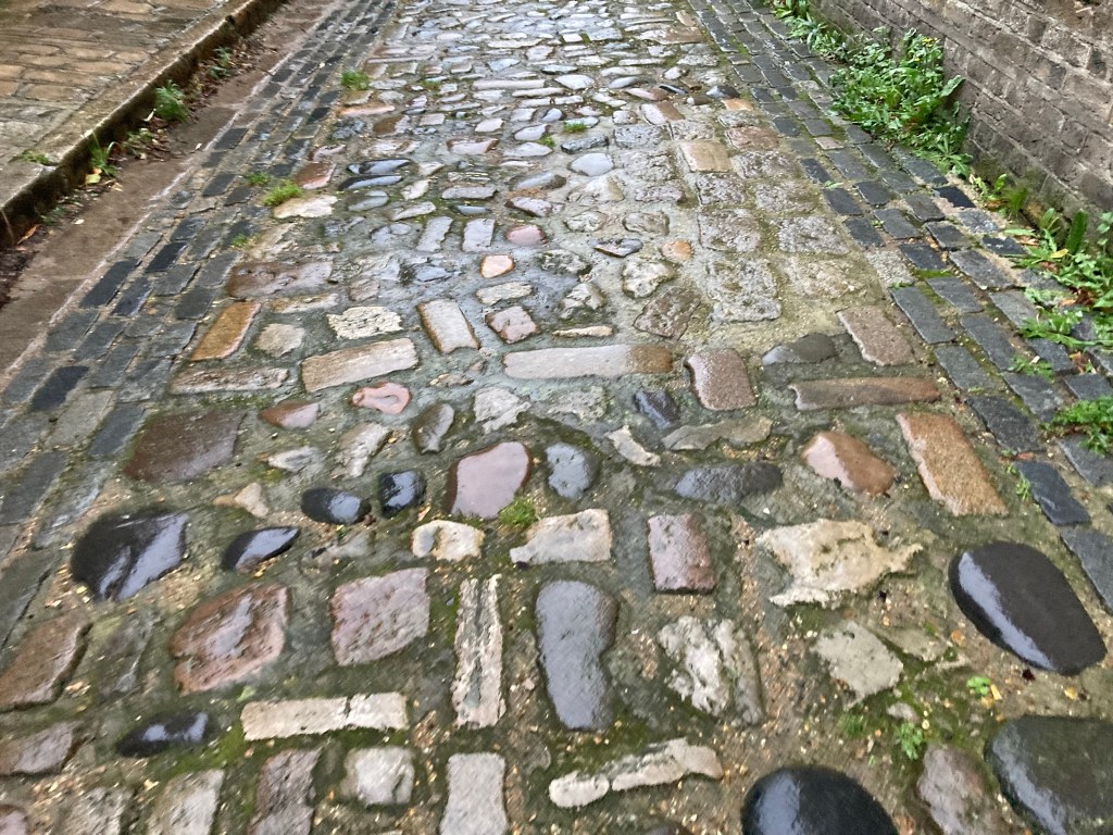 So. I am going to guess that Upper Watergate Street was paved with these boulders in the mid to late 18thC when the new eastern wall of the Royal Dockyards was was built.