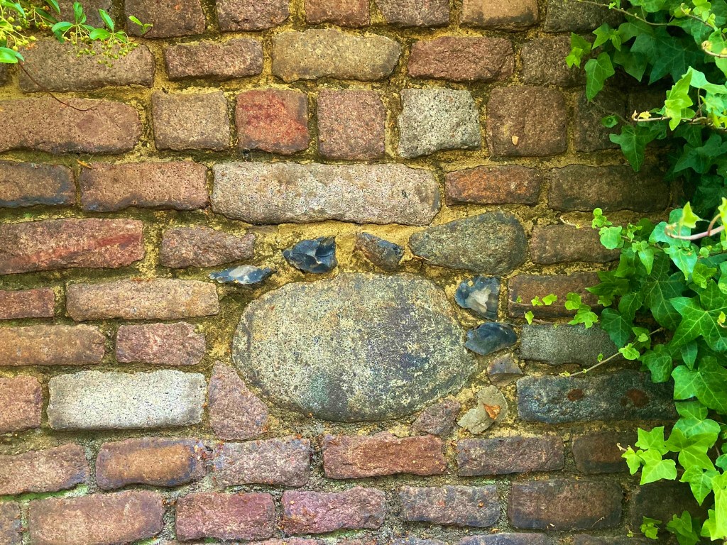 And the re-using of granite road setts for walls in 1960s re-developments is also not that un-usual but what’s exciting about this wall in Anderson Road on the Wyke Estate in Homerton in the London Borough of Hackney is that not only are the setts large and irregular, showing their age, – setts generally got smaller and neater and squarer as the 19thC progressed – see https://buildinglondon.blog/2021/12/30/22-granite-setts-at-the-middlesex-and-essex-filter-beds/ – this wall contains several boulders that are much less usual to see! In fact the use of boulders was key to the suggestion that Upper Watergate Street in Deptford is the oldest road surface in London. See https://buildinglondon.blog/2021/12/12/21-upper-watergate-street-the-oldest-street-surface-in-london/