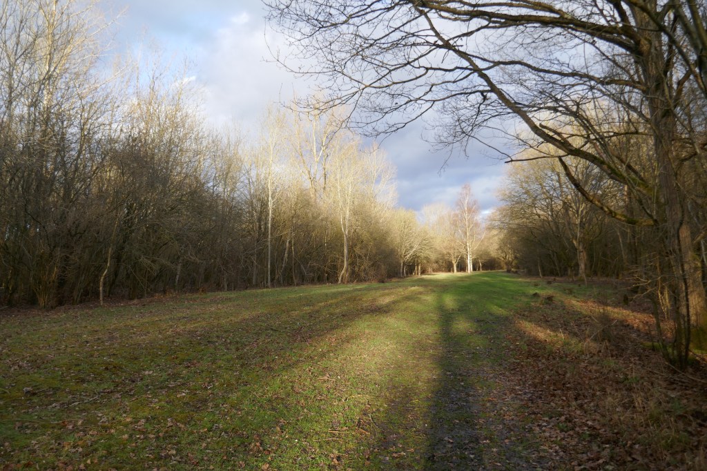 The Meridian Walk itself runs due north, obviously, through what was once the Greater London Council’s tree nursery or arboretum – it’s not clear. Edith’s Streets states “A Tree Park, once the Greater London Council’s Arboretum. Lee Valley Park took this over. There are rows of potential street and parkland trees. Hedgerows around the site had elms growing which were killed by Dutch elm disease. Willows west of the stream were planted in 1979 and were planned to be sold to cricket bat makers.” [4]