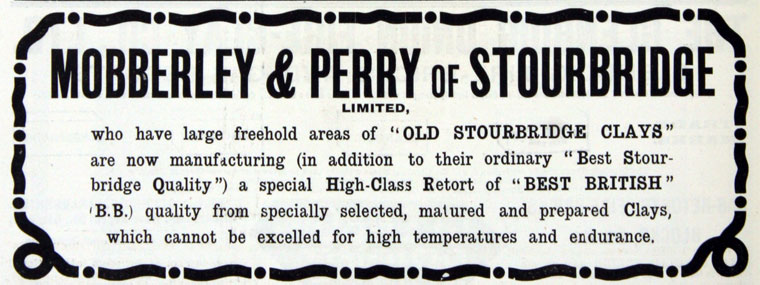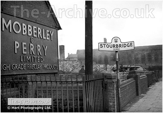 Mobberley aka Mobberly and Perry had a massive works at “The Hayes, Lye, Stourbridge, West Midlands. The brickworks for building bricks was on the main Stourbridge Road in Wollacote and the Firebrick works was in Hayes Lane. George Attwood worked the brickworks untill 1840, then Fisher Bros. worked the brickworks until Mobberley & Perry took over the brickworks, the works closed in the late 1960s.” [16] [17]