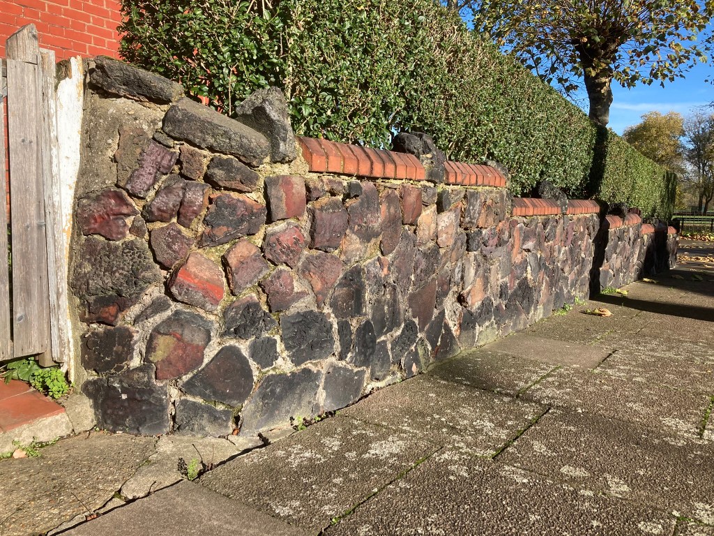 These garden walls lumps seen in London are vitrified though, but that seems either deliberate due to either being baked at very high temperatures so the surface vitrifies or they are maybe actually glazed to increase their toughness. Glazing was often used for pipes to be used to carry liquids but these ‘lumps’ do not look like pipes. [13]