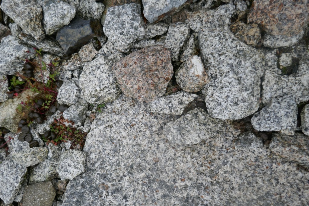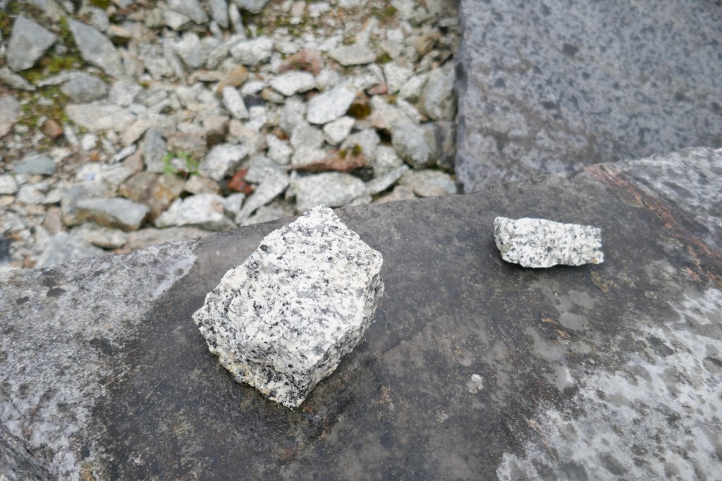 Cobbing and Usher identify the granites as a specific … “… Foggintor-Merrivale Granite … which crops out to the west of Princeton in two quarries (D17) and (D17.1), is a medium to coarse grained granite with a distinctive lithology, due principally to the presence of abundant small K-feldspar megacrysts, which provide a felted fabric forming the greater part of the rock.In some cases larger K-feldspars and large quartzes are also present (Figure 2c). The high content of small tabular K-feldspar megacrysts suggests a general affinity with the Bodmin Moor and Carnmenellis plutons.” [7]