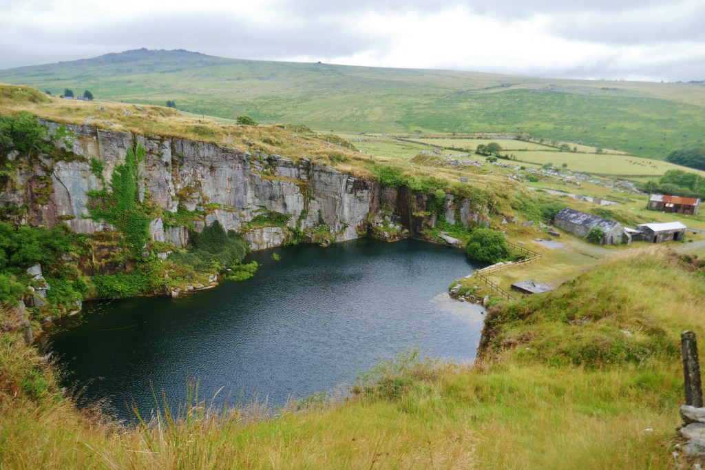 Merrivale Quarry, opened as Tor Quarry in 1874, sits above the hamlet of Merrivale on the western flanks of Dartmoor, [1] [2] and across the valley of the river Walkham from Foggintor [3] and Swelltor quarries [4] and like it’s neighbours played an important, though generally more recent, role in building London. Like Foggintor it is also now flooded, in 2003, but was dug much deeper and quarried for much longer not closing till 1997.
