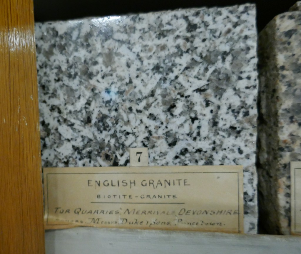 And the Open University Geology Society say Blue Granite was quarried there “The Dartmoor Blue Granite has long been a valued building and ornamental stone as it could be worked with a low risk of fracturing but also had a sufficiently coarse crystalline texture to be decorative. It was quarried at many locations beside Haytor: Merrivale and Foggingtor being some of the larger and longer lived…” [8]