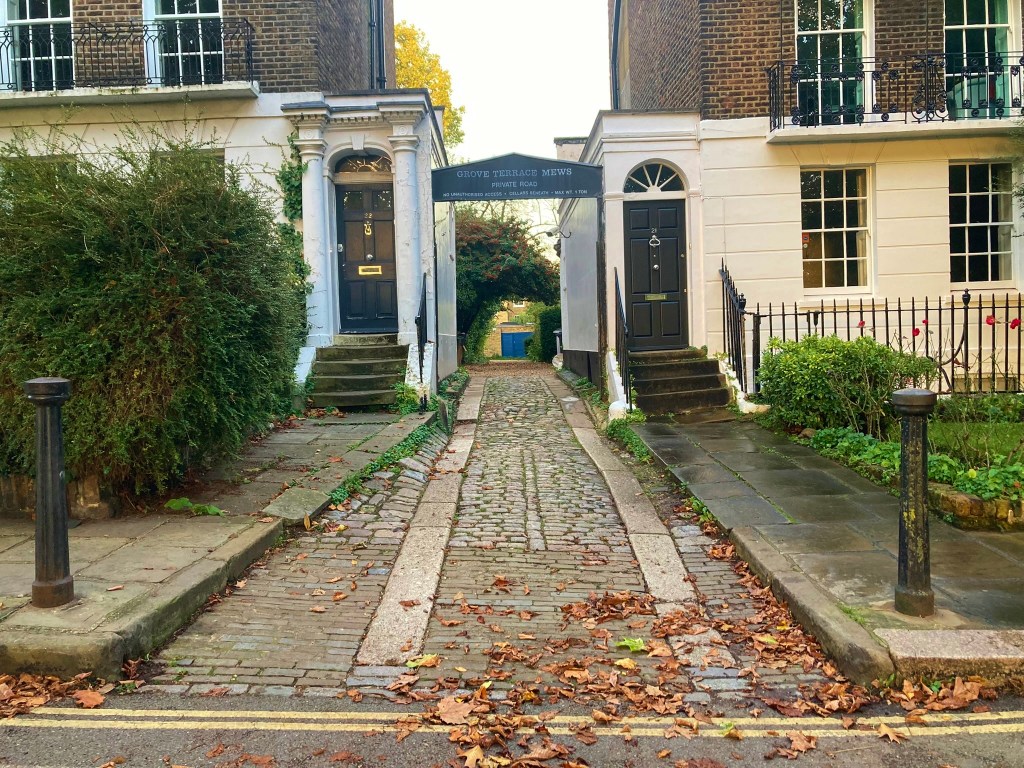 The roadway runs between 21 and 22 Grove Terrace, a terrace set back from Highgate Road in Dartmouth Park and opposite Parliament Hill, to the mews behind.
