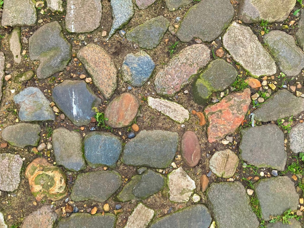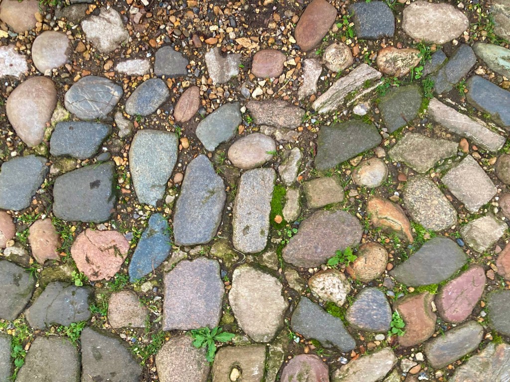 The cobbles themselves are, at least to a non-geologist, fairly un-identifiable – suggestions in the comments please! – except to note there is a dark red ‘ferricrete’ which suggests that it is locally sourced from Ice Age gravels in which ferricrete cobbles and boulders are produced. Quite possibly the stones are mainly quartzite. See the Building Stones of Essex for more detail. [1]