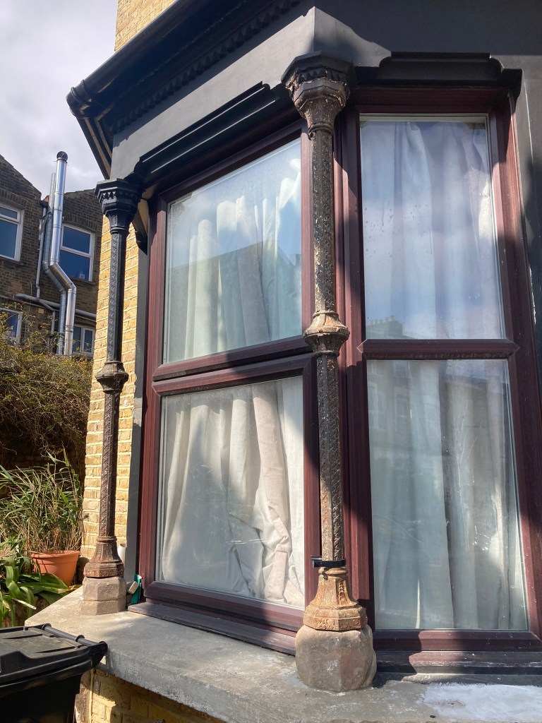 Recently spotted on a 19thC house in Linscott Road in Lower Clapton was this iron bay window pillar/support column. Unusually it had been left unpainted after a century of paint had been removed and so by chance a brand could be seen on it, ‘WELLS COMP’.