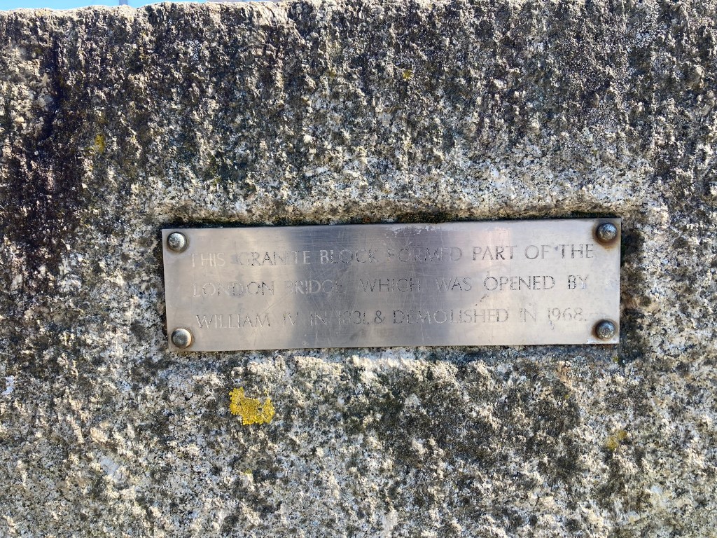 “… many stones were left at Merrivale Quarry in Dartmoor and auctioned off on the internet after the quarry was flooded in 2003. Barking Council had the foresight to buy two of them and here they are.” (1) So they are NOT actually from London Bridge! 😀